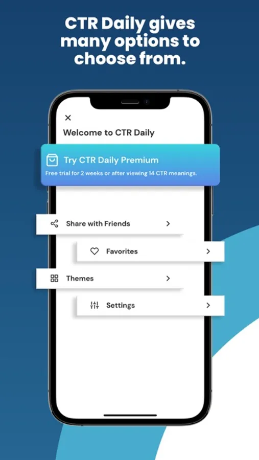 Please enjoy 2 weeks free or viewing 14 CTR Meanings. After the free trial we offer a premium subscription for $2.99 a year.