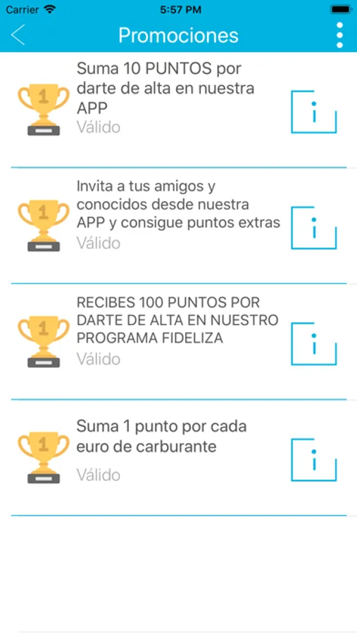 - Información sobre las distintas promociones activas para cada Tarjeta.