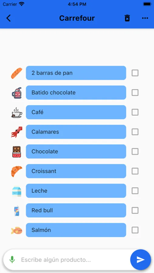 ¡Puedes añadir productos a las listas por VOZ! Solamente tendrás que dar al botón del micrófono y decir los productos que quieres añadir separados por una 'y'. Por ejemplo: 200 gramos de ternera y leche y pan. ¡Y voilá! tus productos se añadirán a la lista.