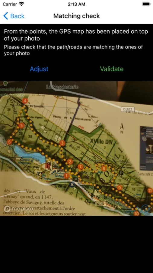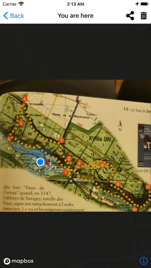 With You Are Here, take a picture of your map or load an existing one. Then, indicate where are located 2 points of this map. Validate. You now see your GPS location on the map you chose!