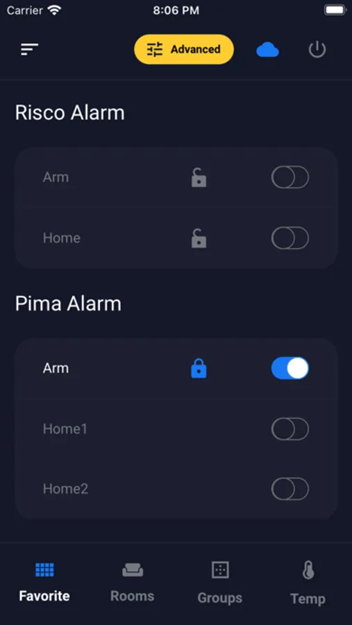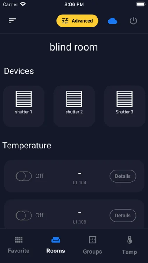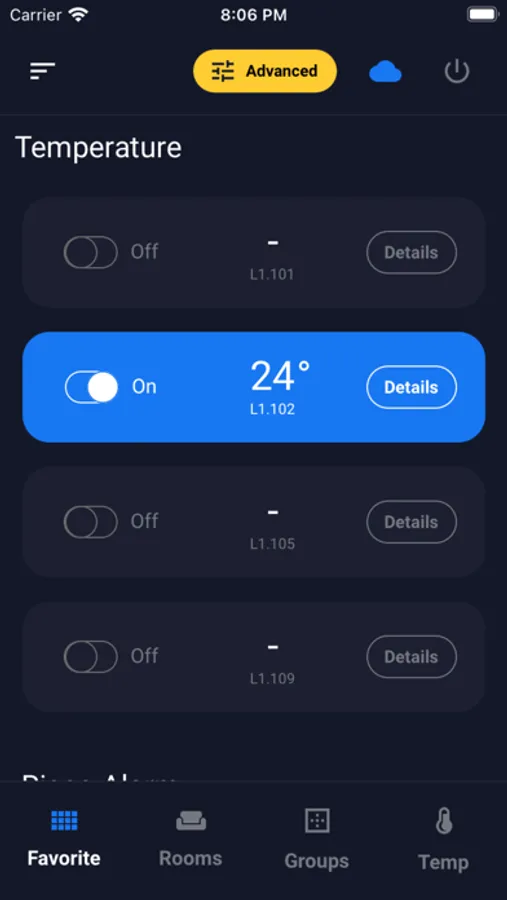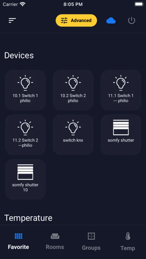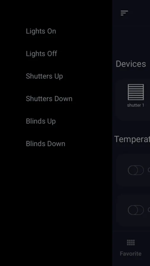 New and intuitive menu of favorites, rooms, groups and temperature tabs enable quick navigation and action performance.