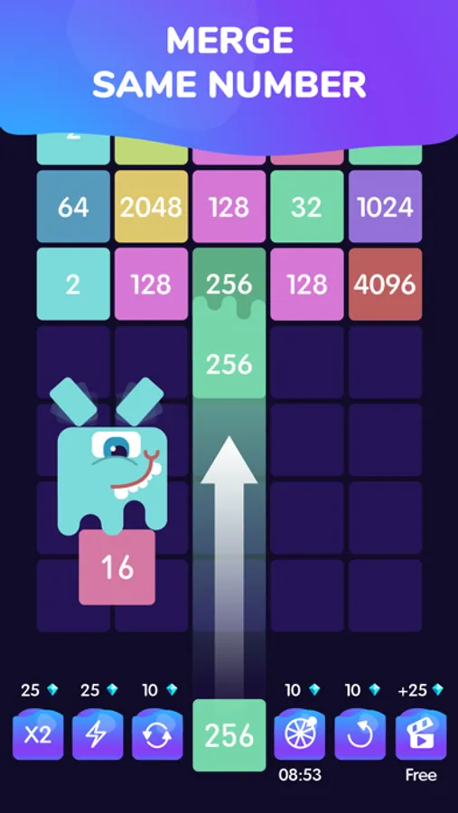 Merge Block Max is a new logic puzzle aimed at actively developing logical and strategic thinking while competing with friends and players around the world. The game with the sum of numbers is exciting with a fun process, it has a minimalistic style and an attractive design.