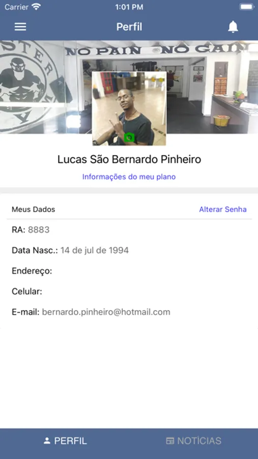 Aplicativo para clientes das academias que utilizam o software DM10Fit, com design personalizado para os clientes da Saturno de Lutas.