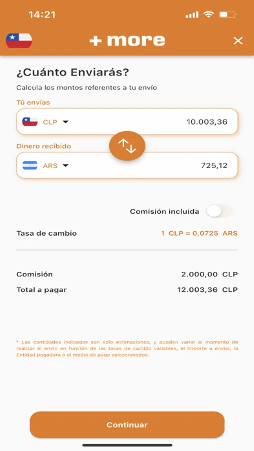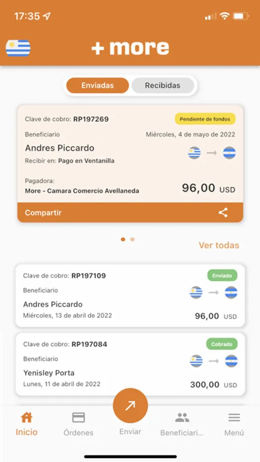 +More es la aplicación que tiene como finalidad enviar remesas familiares, envío de dinero internacional en toda la red More Money Transfers.