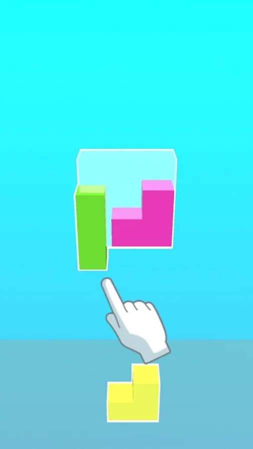 Fit all the pieces in the floating block. Hold and drag to move the pieces, swipe on the screen to rotate the floating block. Have fun!