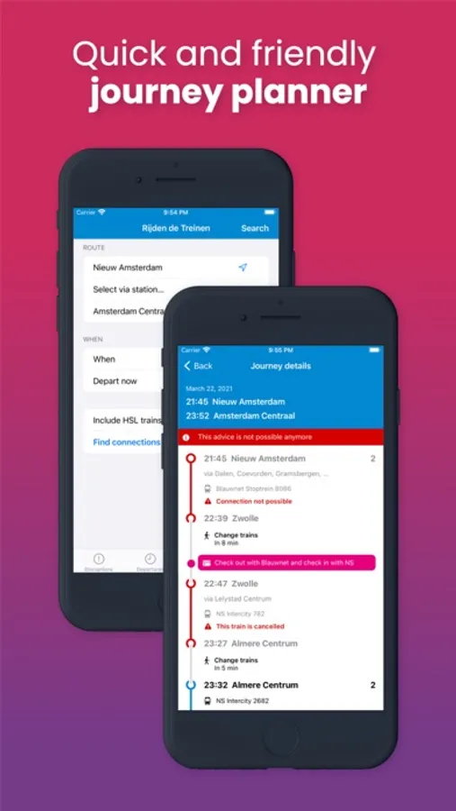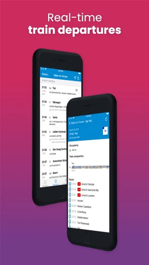 Live departure times are available for all railway stations, including information about train length. You’ll also see whether the train will be occupied. The journey planner allows you to plan trips throughout the Netherlands (and international train trips to or from the Netherlands). Best of all: it's free!