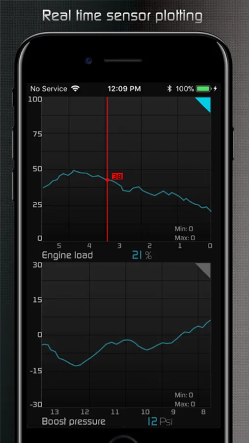 • Real-time user-defined sensor plotting. Graph up to 4 sensors at the same time on interactive graph that can be scrolled, paused and selected.