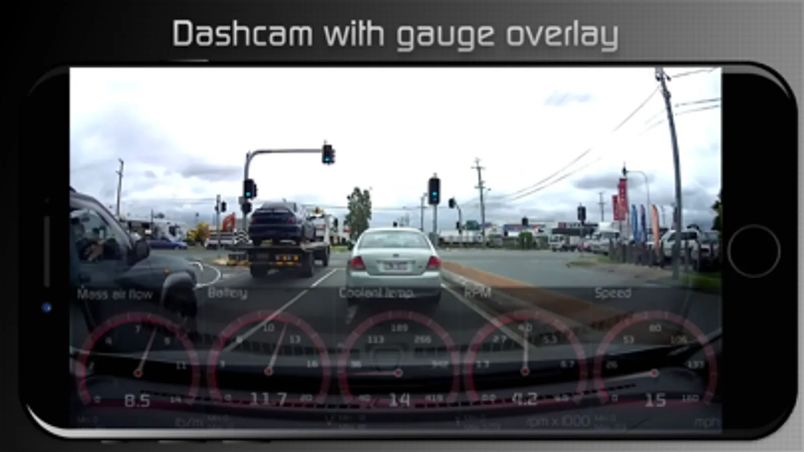• Dashcam: Record smooth HD video with overlaying gauges (speed,rpm, etc), time, location (GPS coordinates) and G-force sensor in four different resolutions. You can record from 90 sensors and up to 5 gauges.
