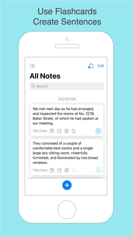 - Before you go to bed, take 30 minutes to find anything written in English on the Internet to copy and paste to this app.