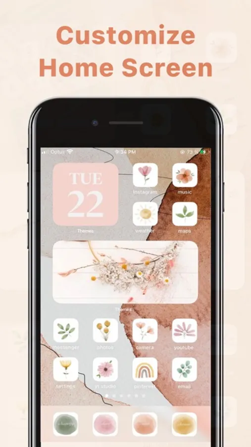 Say Goodbye to Boring and Dull Home Scree! Come to pick up themes to transfer your home screen to an aesthetic art work! Our "Theme for iPhone" makes your home screen more personalized and attractive!