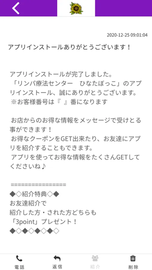 ひなたぼっこのアプリをSNSを通じてお友達に紹介する事ができます。