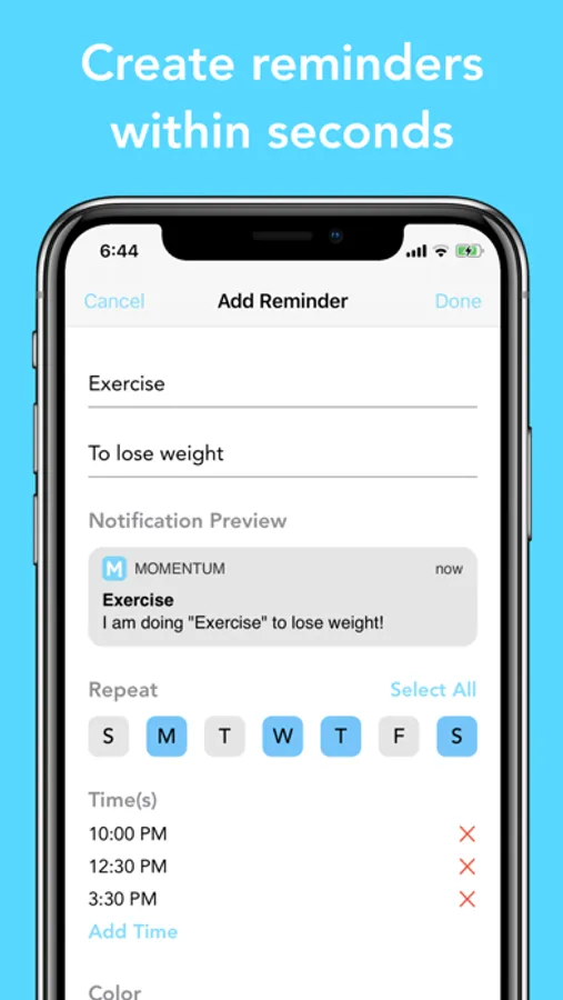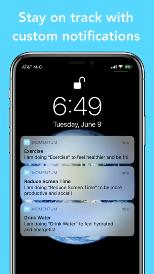 The best way to stay on track with your habits is to constantly remind yourself why you want to build the habit. With Momentum, you can not only set any number of custom notifications, but you can also remind yourself the reason why you are working towards your goals. Start your self-improvement journey today!
