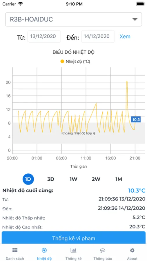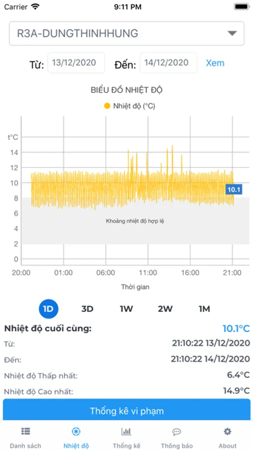 Điểm nổi bật của phần mềm là hệ thống cảnh báo quá nhiệt, mất tín hiệu và đánh giá chất lượng bảo quản thực phẩm của kho lạnh.
