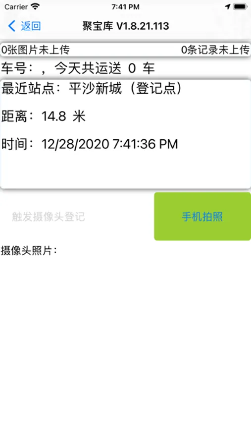 利用GPS和摄像头连接,判断运输车辆是否进入登记地点范围内,生成登记记录,获取照片,上传到服务器。