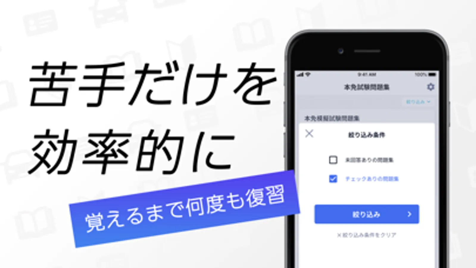 過去の試験問題や模擬試験をスマホひとつでいつでも学習できる無料アプリです。