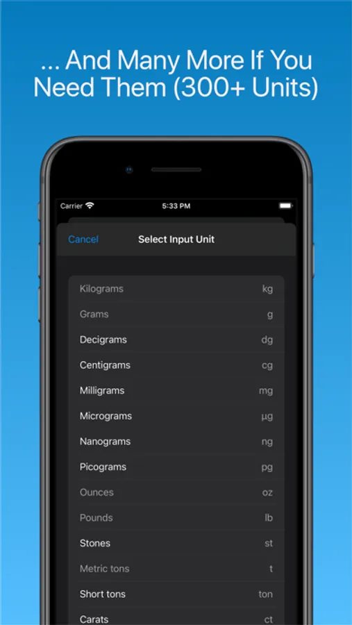 - Commonsense sorting of units based on magnitude and whether they are metric or imperial.