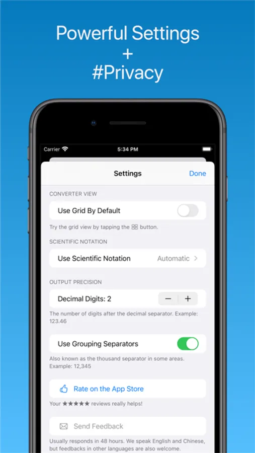 - Choose between two converter views. The first one lets you easily perform multiple conversions between two units. The second one shows you all the units in one easy-to-read grid view.