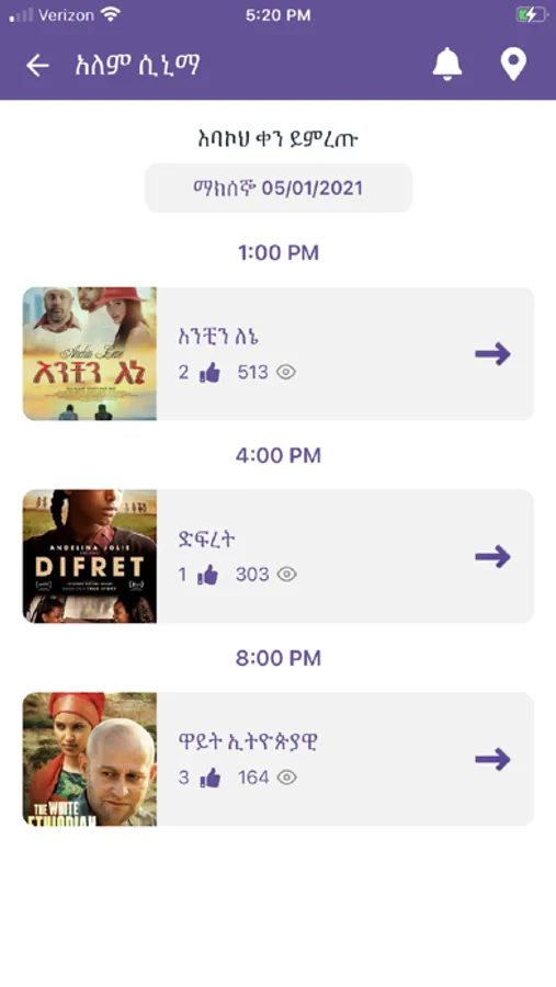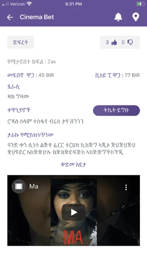 Cinema Bet app is the first movie ticket purchasing platform in Ethiopia. You can watch their release date & time you will also find a brief description of the film, a list of the author's name, cast, and synopsis of the film's as well as movie preview. Cinema Bet app is a fast and modern application where you can find movie showtime in Ethiopia. Cinema Bet app also allows you to buy movie and theater tickets from any where with out going to movie theater and hassle or procession.