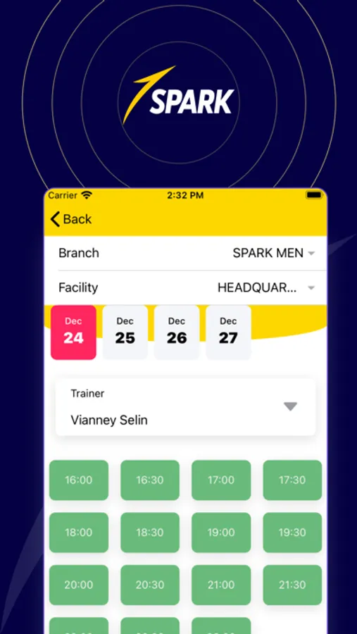 Spark Athletic Center members can track their fitness programs and measurement results. Also this application provide to make appointment for group training or personal training.