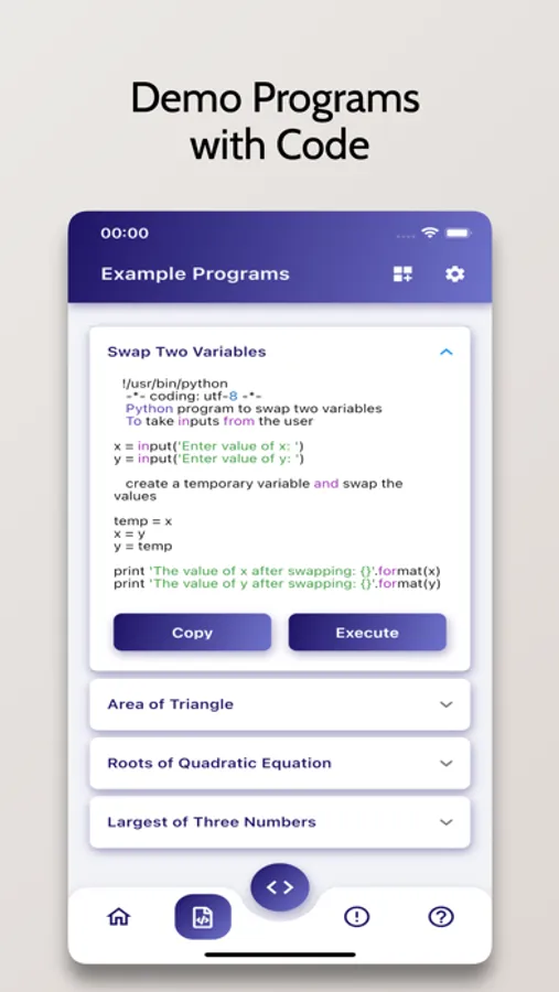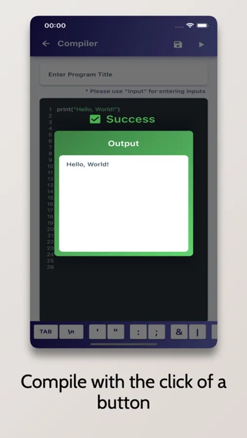 Python Compiler is an Advanced IDE enabling you to compile Python Programs on your Mobile Phone for Free. It comes with a code editor with in-built syntax highlighting capabilities.