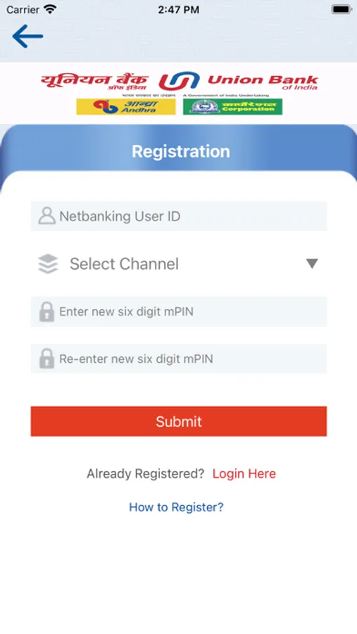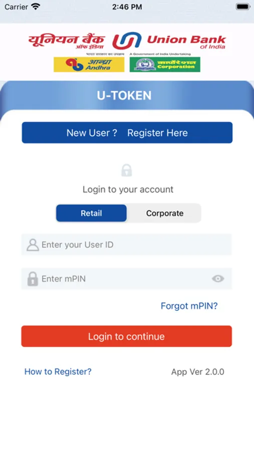 2. On successful registration, confirmation SMS will be sent to your registered mobile number. Download & install U-Token app on your mobile. Tap New User? Register Here & complete registration in app.