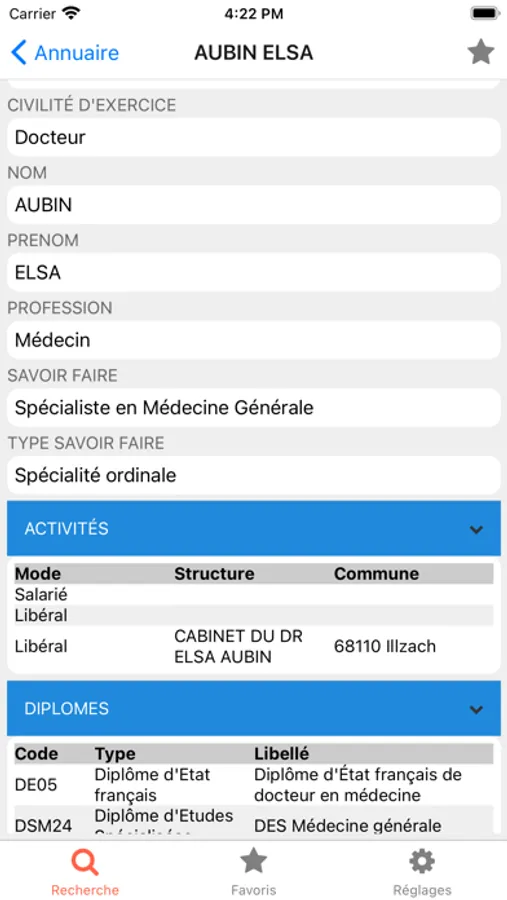 Cette application vous permet de consulter les données d'identité certifiées des professionnels de santé des répertoires RPPS et Adeli, sur votre iPhone, même sans connexion internet.