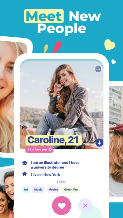 We make it easy to start a conversation. Every match begins by someone liking or commenting on a specific part of your profile.