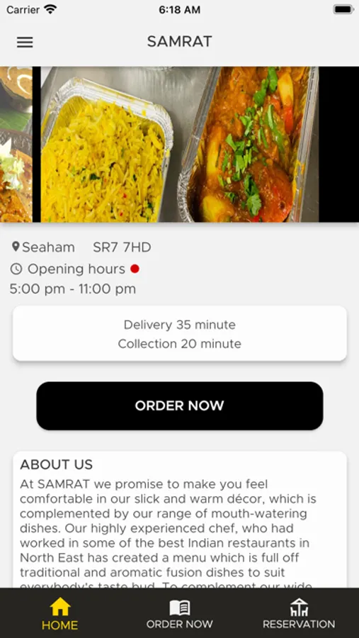 Welcome to samrat Indian dining room. our slogan is eat healthier, live better. we always provide fresh meal. to reserve a table or order takeaway, you can call us via 0191 581 74 44 some dishes may contain nuts. if you are allergic to nuts or any other ingredients, please notify a member of the staff.