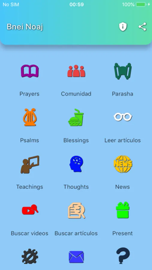 This app contains some study materials for Bnei Noach. It includes a prayer book, psalms in Spanish, daily thoughts, articles of general interest, and a description of all the sections of the Torah, with different teachings.