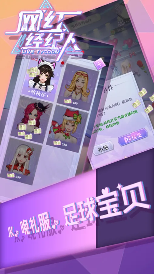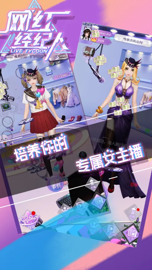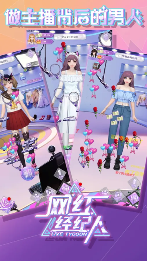 一款当下流行的网红直播二次元画风的模拟经营游戏,属于直播网红、直播游戏、二次元游戏 。 只要你通过努力经营自己的主播给你获得更多收入,当然解锁更多的直播房间、升级直播设备是游戏的特色,让你走上人生巅峰。邀请不同的主播和给主播穿上你所搭配的服饰直播,美妆搭配,服装搭配,类似庄园游戏可以打造自己的梦想家园。