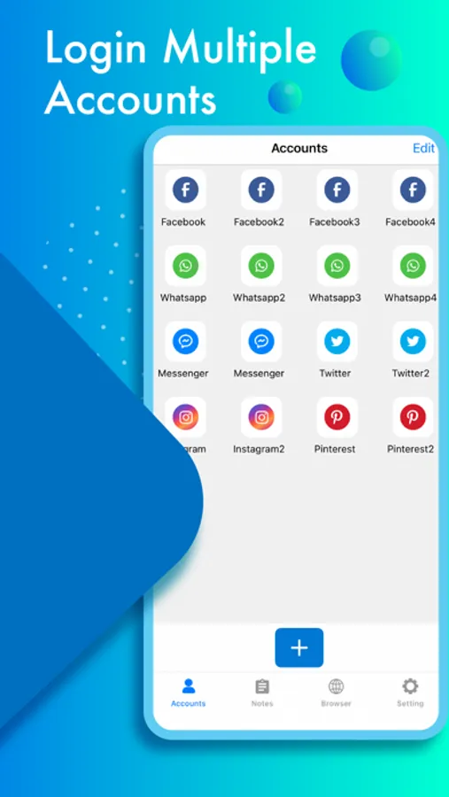With it, you can login all accounts in one app. It help you to remember & keep update in all social apps. Support more than 20 apps to login simultaneously.