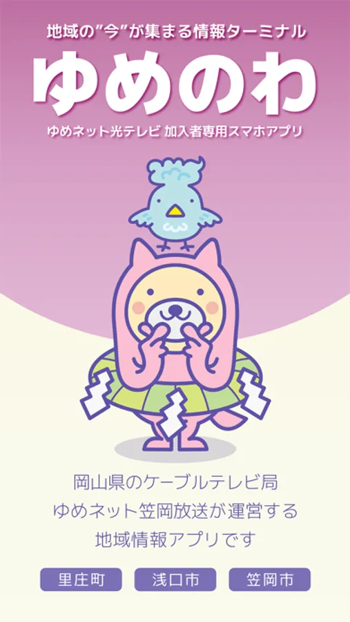 ゆめのわ(旧まちのわ)は、岡山県の笠岡市、浅口市、里庄町のケーブルテレビ局『ゆめネット 笠岡放送』が提供する地域情報アプリです。