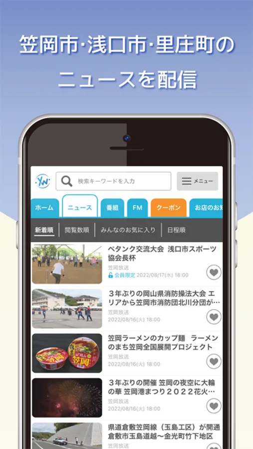 ※ゆめネット笠岡放送 光テレビ加入者向けのスマホアプリです。