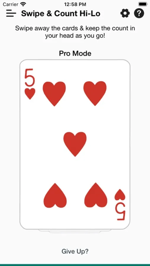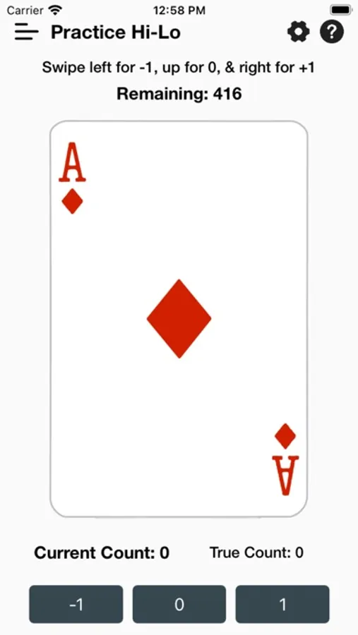 Use the Practice mode to get a feel for using the system and keeping a count. Swipe away cards or tap the button of the count to pick the correct count.