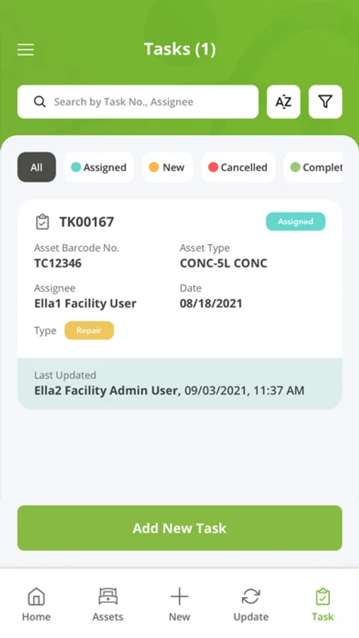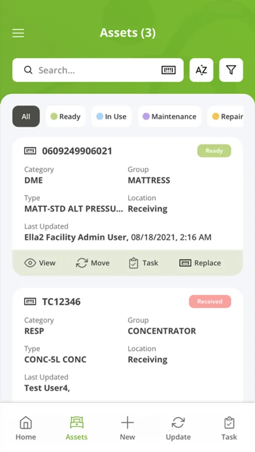Users add assets by scanning a barcode affixed to the asset using the device's camera and providing a location and status along with other asset information. Any movement of the asset is tracked using the app to provide real-time information about an asset’s availability and whereabouts. Users can filter, sort, and search their asset list to locate equipment when it’s needed. Users can create a task for an asset and assign it to a user. Tasks provide a means of knowing when an asset needs maintenance or repair. All asset movement and tasks are tracked to provide a history of asset usage. The MediLogix app provides access to Ella, an asset management system exclusively for MediLogix customers. A MediLogix account is required for access.