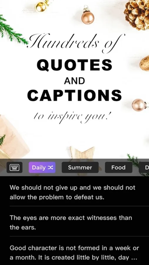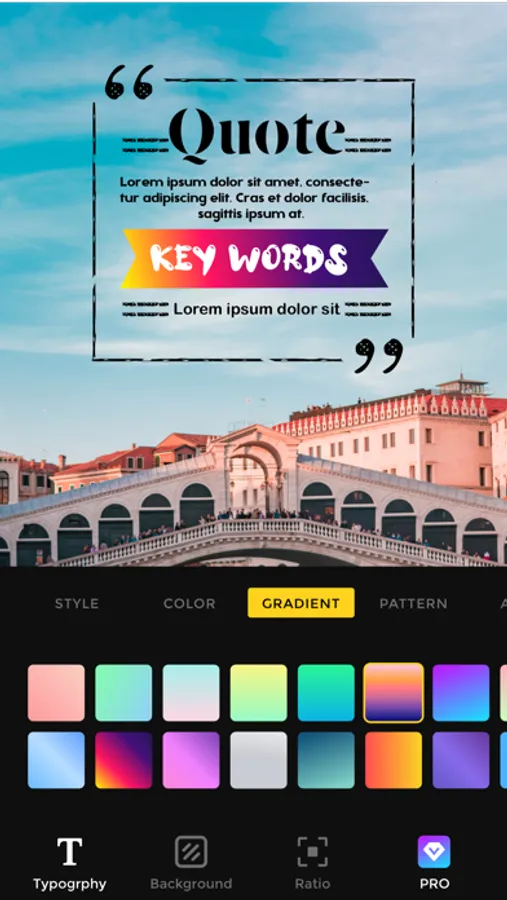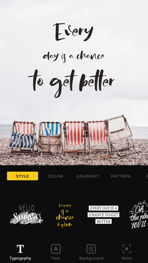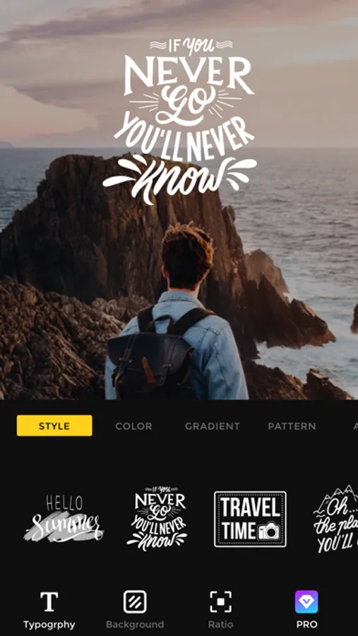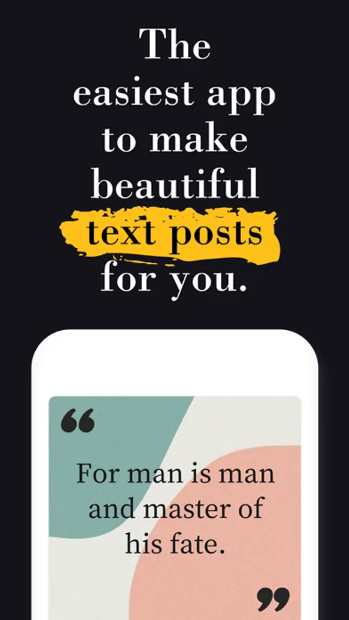 TextSwag saves you tons of work by automatically creating complex text layouts with different fonts and typefaces. By just a few taps, you instantly get your text beautifully laid out on a background of your choice. This would take hours if you were using Photoshop or a similar photo editor. (The text designs are not templates and they are generated randomly as you choose different styles).