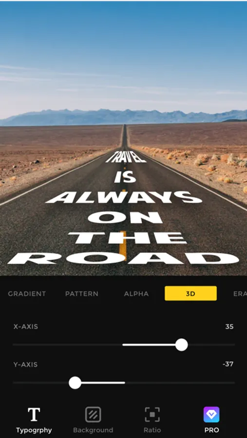 - Ability to 3D distort, apply gradient colors, shadows to your text
