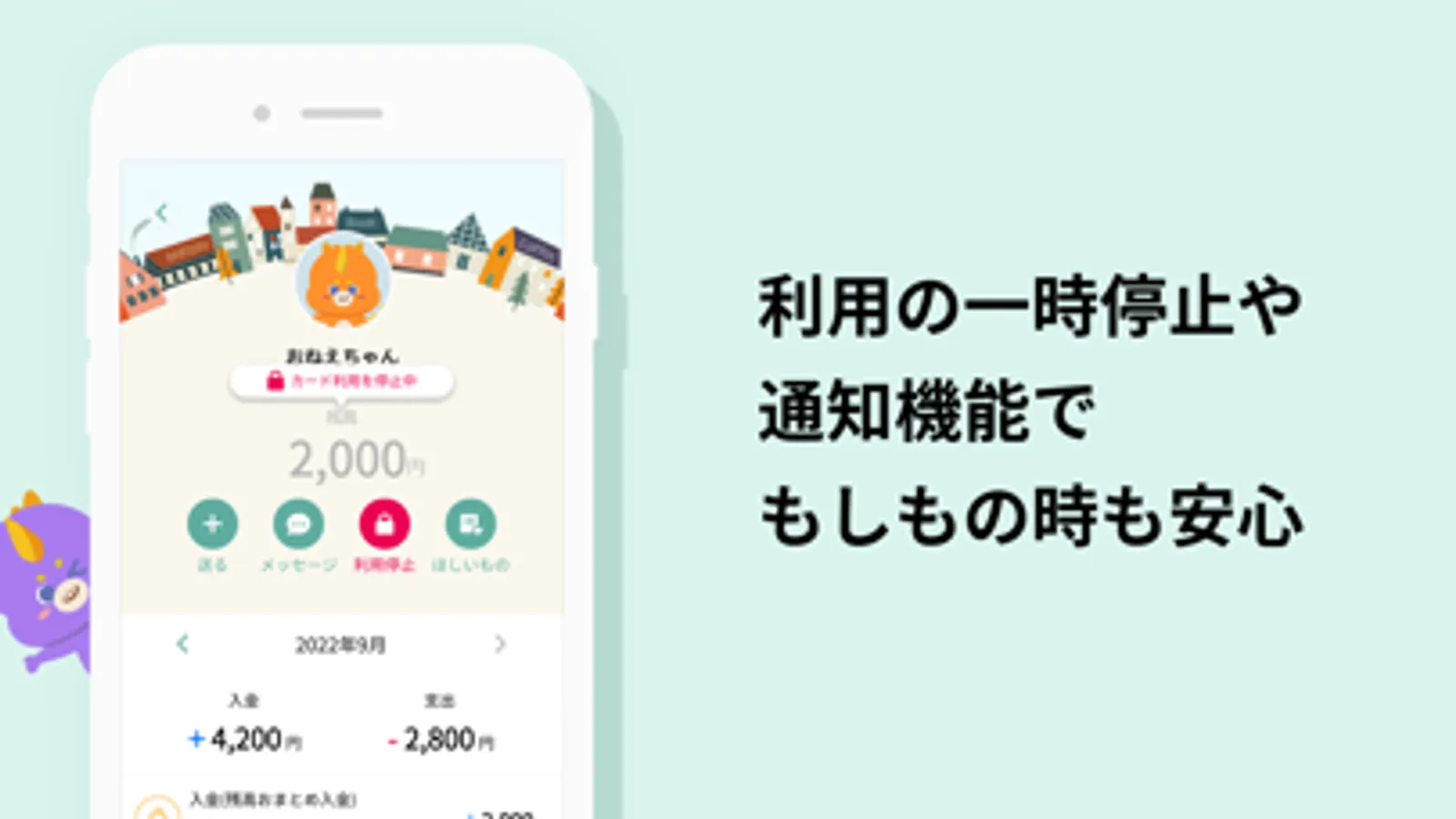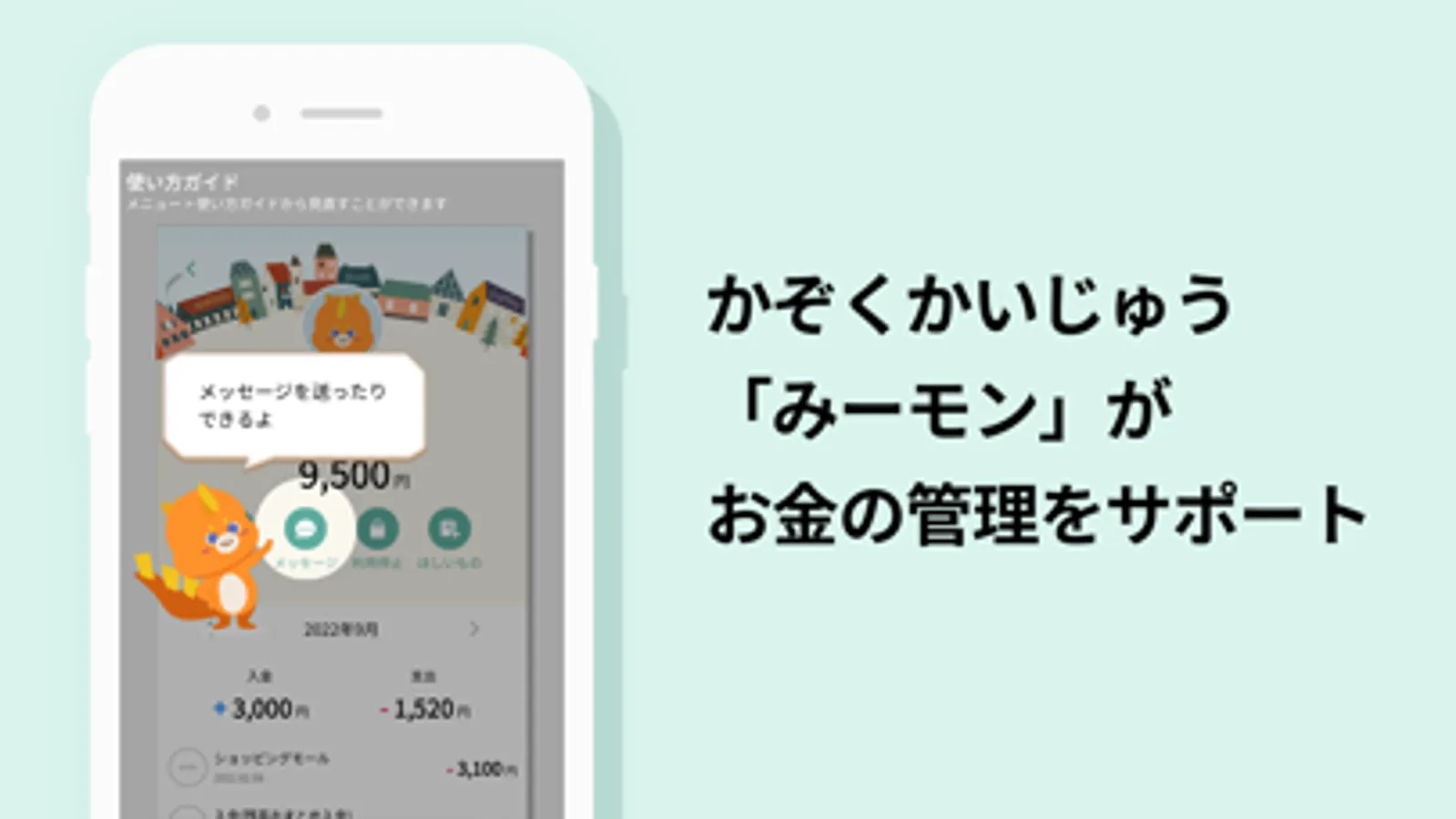 ・かぞくかいじゅう「みーモン」がお金の管理を見守り、サポートします。