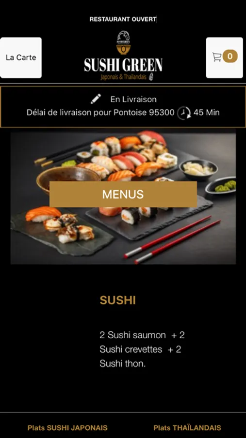 L'application SUSHI GREEN vous permet de commander en ligne ou par téléphone via votre application. Vous pouvez consulter notre carte et choisir vos produits.