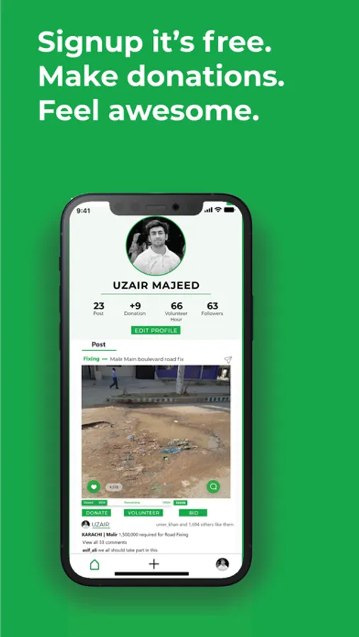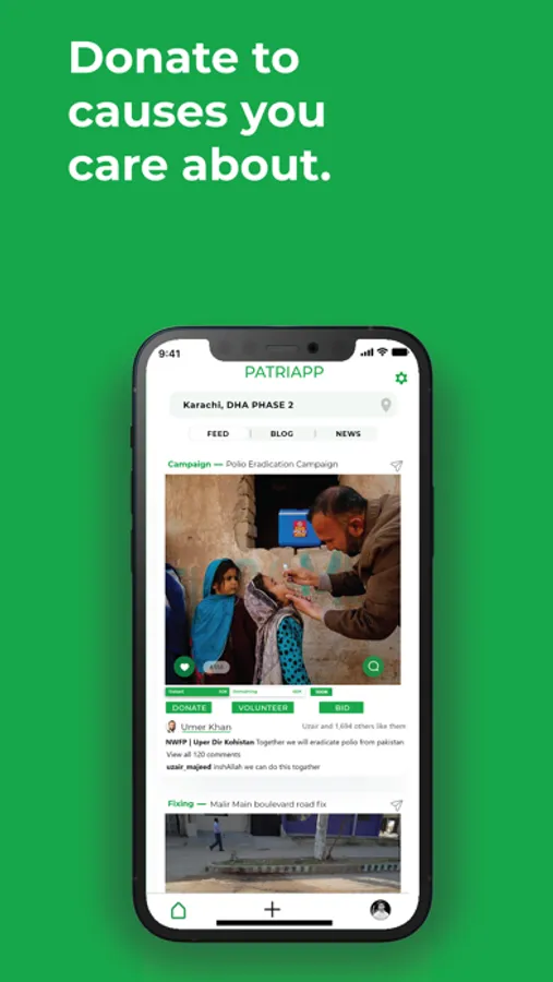 don’t have enough knowledge about the issues. We want to highlight and solve them systematically. You can pledge money for a charitable cause or bid on an ongoing community project. Or bring human power to help community by offering volunteer services. You can find relevant feed based on your locality. So that helping someone or participating in a good cause is
