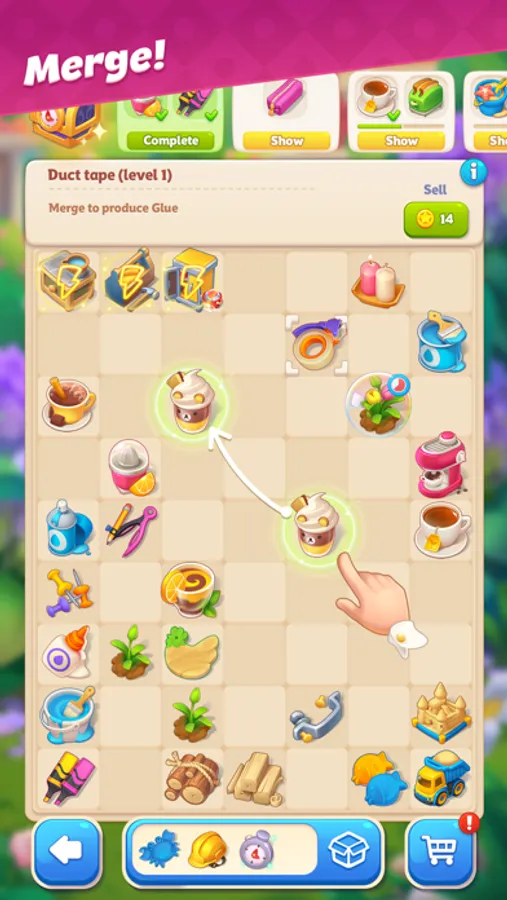 DRAG & MERGE – Objects that seem useless now may come in handy later. Collect objects and turn them into useful tools by merging them. Use these objects to repair the house.