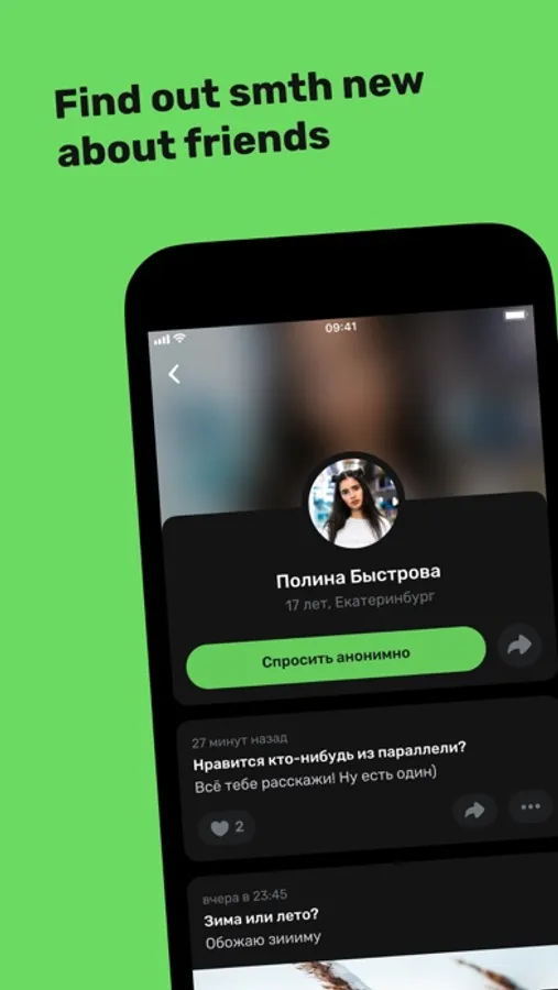 Ask anonymous questions to your friends – find out what people think about you, how your friends live, if your crush dates someone.