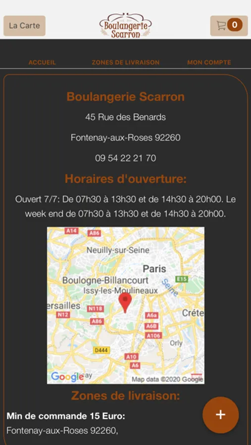 L'application Boulangerie Scarron vous permet de commander en ligne ou par téléphone via votre application. Vous pouvez consulter notre carte et choisir vos produits.