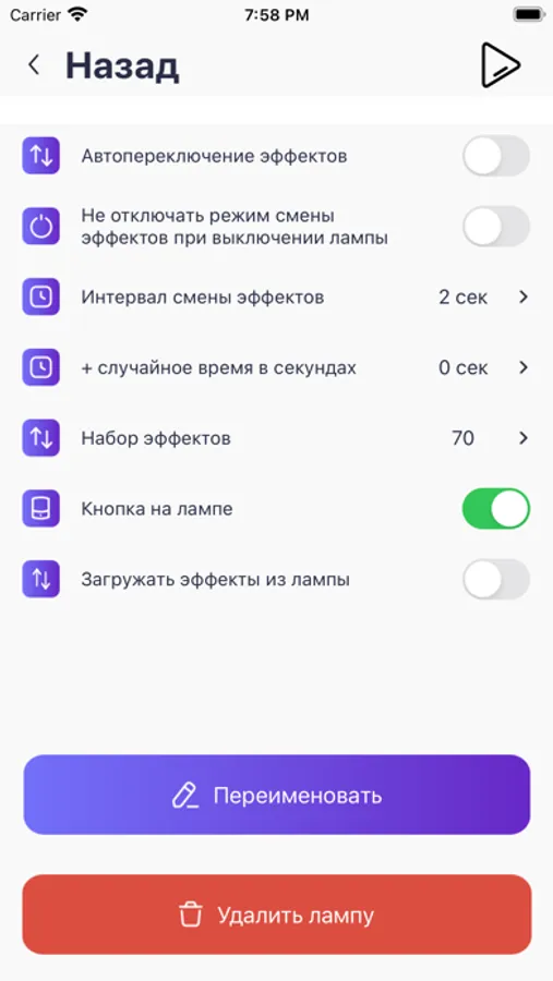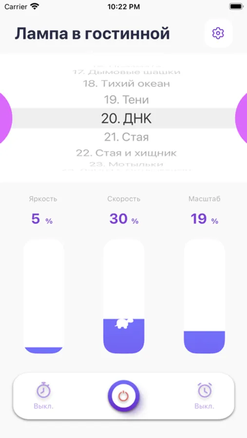 - управление яркостью, масштабом/интенсивностью и скоростью каждого эффекта отдельно