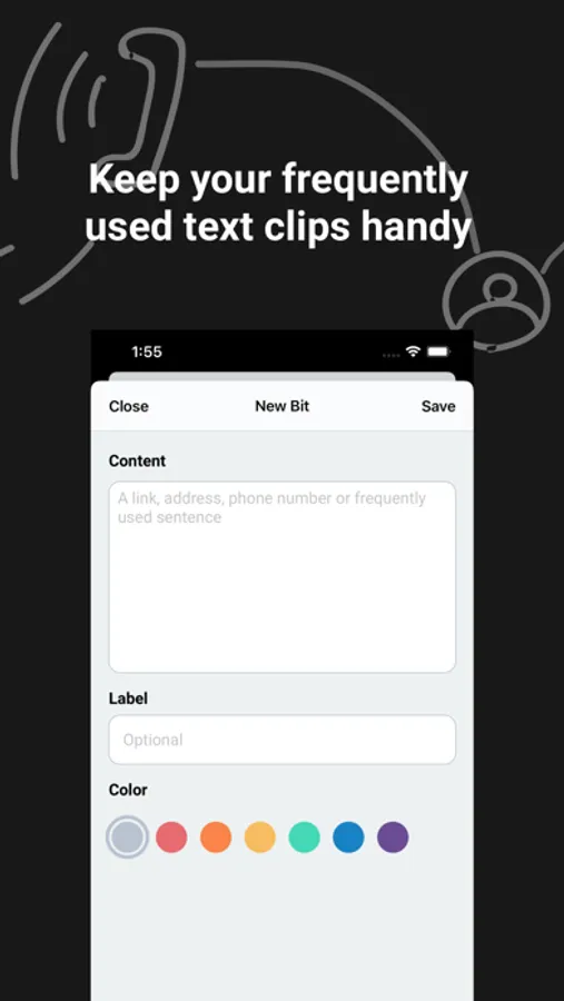 You can add texts which you often use such as your home address, phone numbers, links, quick replies or etc. to your Bit Box.