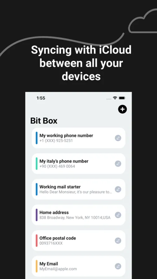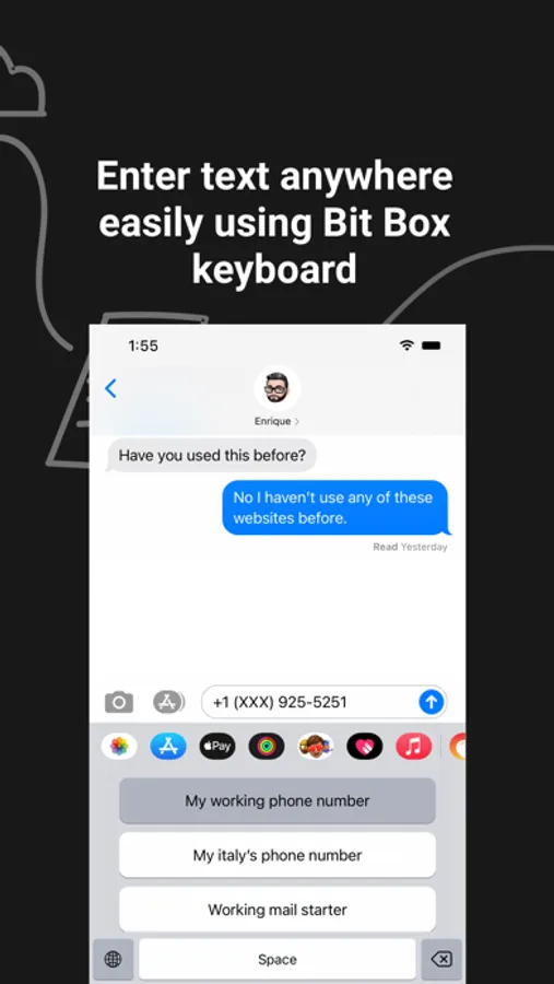 Bit Box keyboard gives you the access to your saved texts on all your iPhone, iPad or even your mac while typing.
