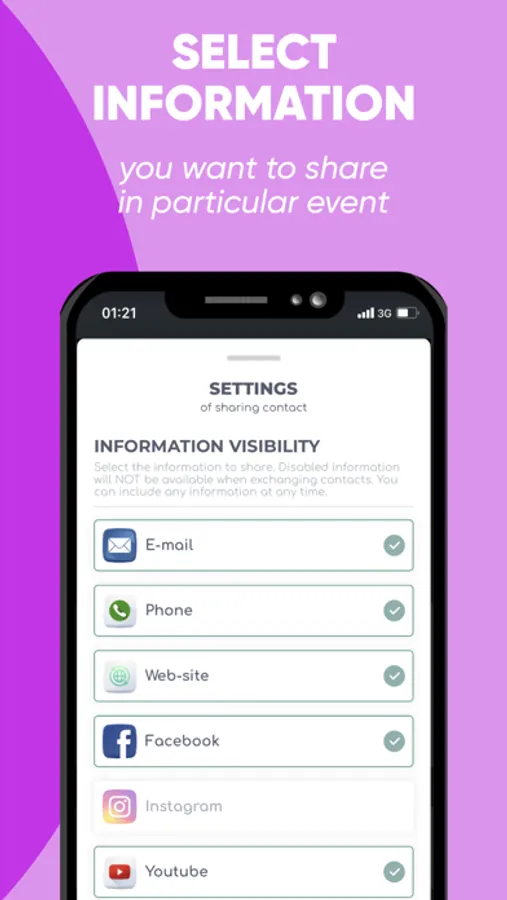 - a link to the site, social networks (Instagram, Facebook, LinkedIn, TikTok, Twitter, Pinterest, YouTube, share the Clubhouse event, etc.), as well as messengers (Telegram, WhatsApp,Viber etc.) and documents through file-sharing - all links will be clickable, immediately upon opening and after saving the contact, your interlocutor will be able to follow them.