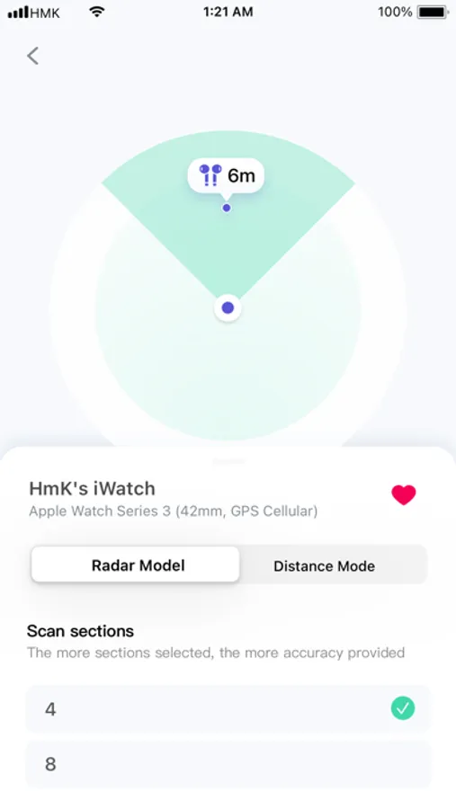 Tip: After using the positioning mode to find the location of the device, the APP will automatically switch to the distance mode. You can easily find the device according to the real-time location of the target on the screen with the sound and vibration of the phone.