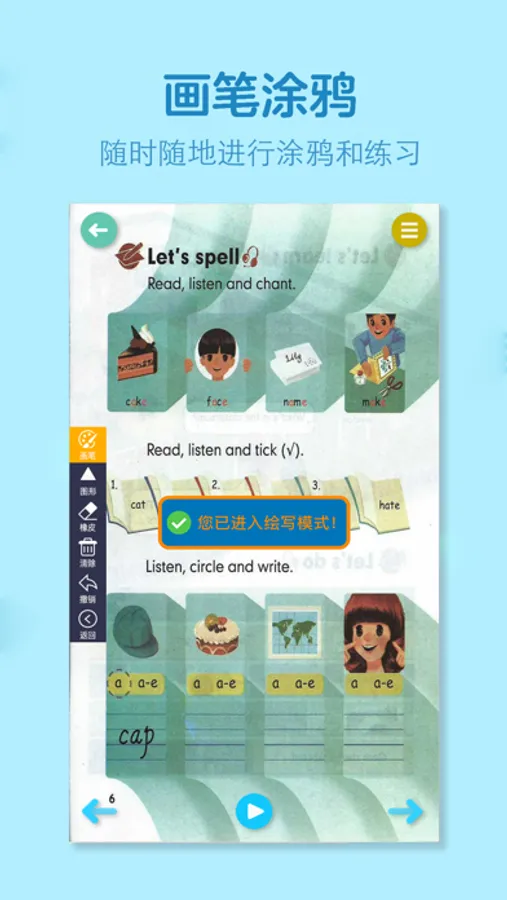 【2】画笔功能,全屏涂鸦让学习更加的有趣让学习更加高效率。完全同步最新发行教材,绝无缺漏页现象。