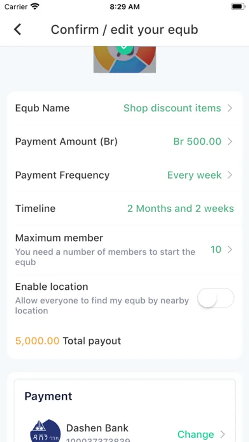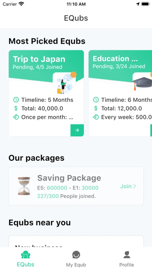 Equb is a traditional means of saving. People voluntarily join a group and make a mandatory contribution (every week or month for example). The "pot" is distributed on a rotating basis determined by a drawing at the beginning of the equb.